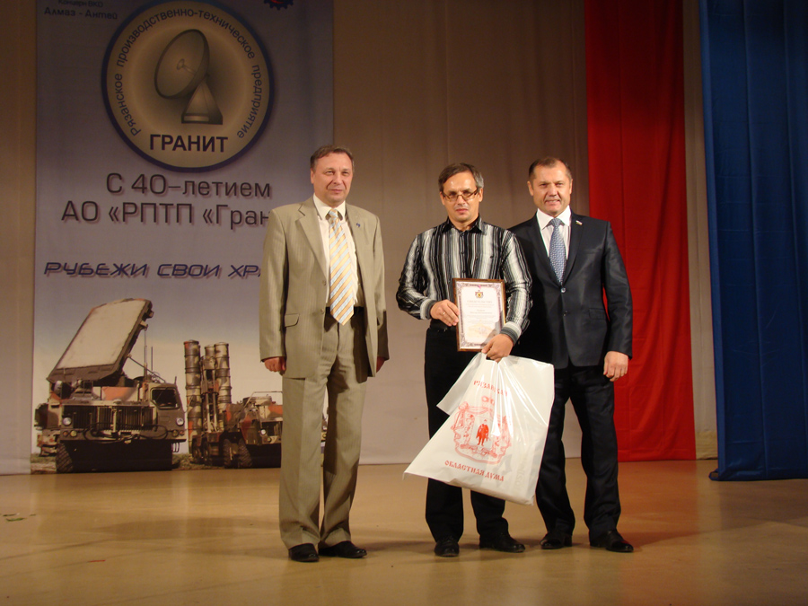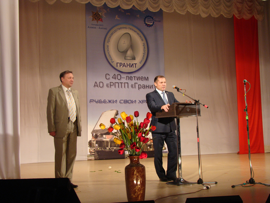 От имени председателя и депутатов регионального парламента он тепло поздравил трудовой коллектив с 40-м юбилеем. В своем выступлении он отметил, что предприятие занимает ведущую роль в создании надежной противоракетной и противовоздушной обороны нашей страны, имеет крепкий научный, экономический и кадровый потенциал, и пожелал всем сотрудникам крепкого здоровья, семейного благополучия и дальнейших успехов в деле укрепления обороноспособности нашего государства.