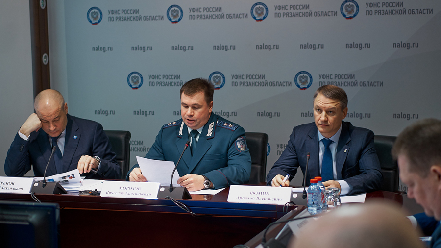 В работе коллегии приняли участие председатель областной Думы Аркадий Фомин, вице-губернатор Игорь Греков, представители правительства Рязанской области, главы других региональных ведомств и начальники инспекций УФНС.