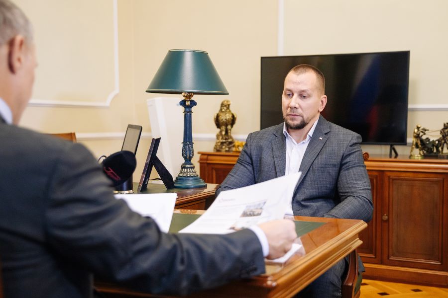 Председатель Рязанской областной Думы Аркадий Фомин провел встречу с участником региональной кадровой программы «ГЕРОИ62» Романом Денисовым, на которой подвели итоги первого этапа стажировки защитника Отечества в законодательном собрании.