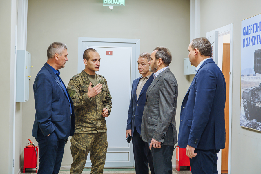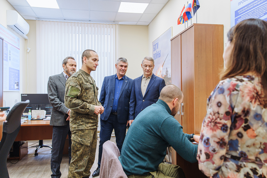 В среду, 23 октября, председатель регионального парламента Аркадий Фомин совместно с представителями депутатского корпуса – Александром Шевыревым, Сергеем Лукьяновым и Дмитрием Боронтовым – посетили пункт отбора на военную службу по контракту. Он располагается в центре Рязани, на улице Каширина, в здании бывшего училища связи. Парламентарии познакомились с работой пункта, встретились с потенциальными кандидатами на заключение контракта и обсудили итоги работы с начальником пункта Дмитрием Зайцевым.