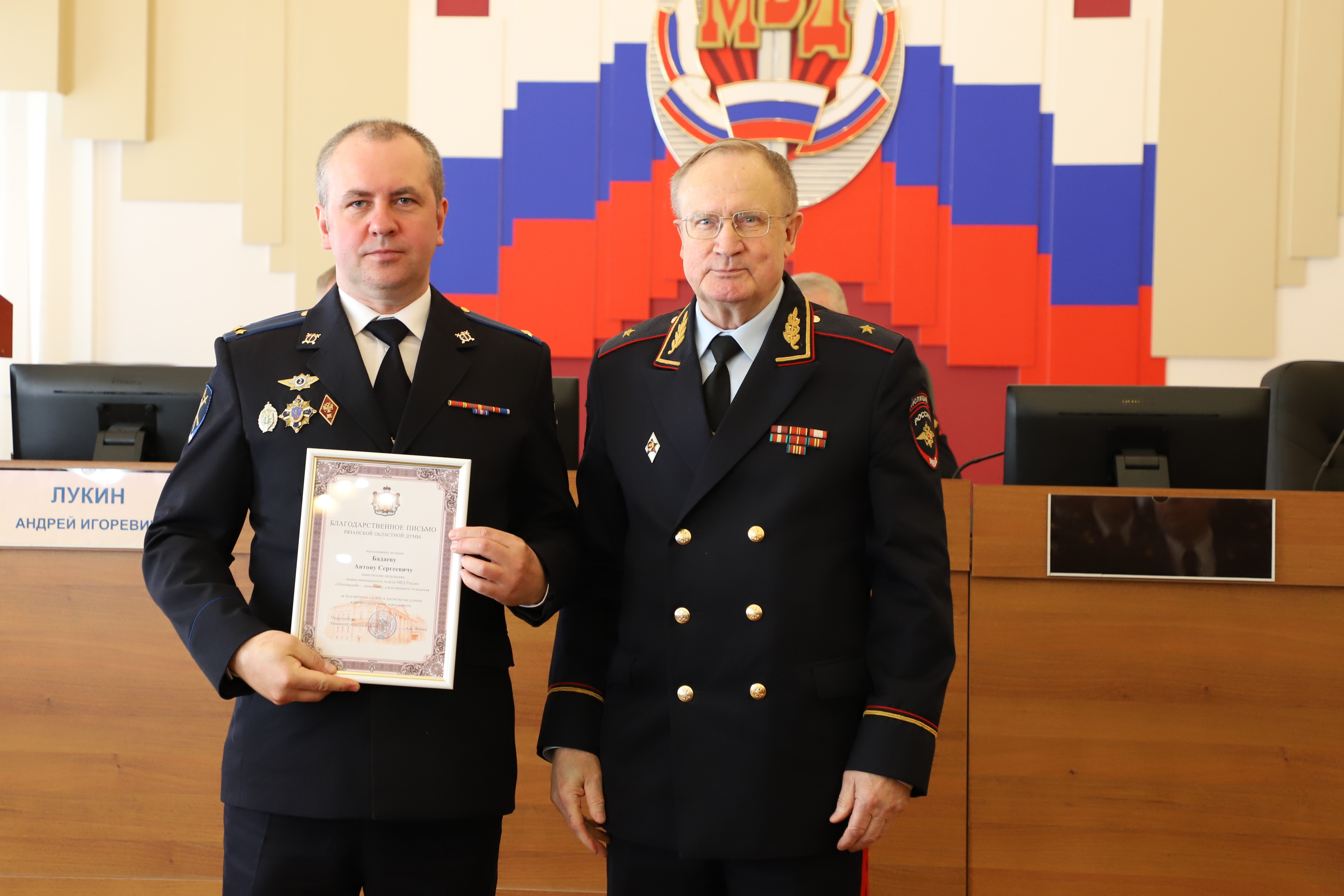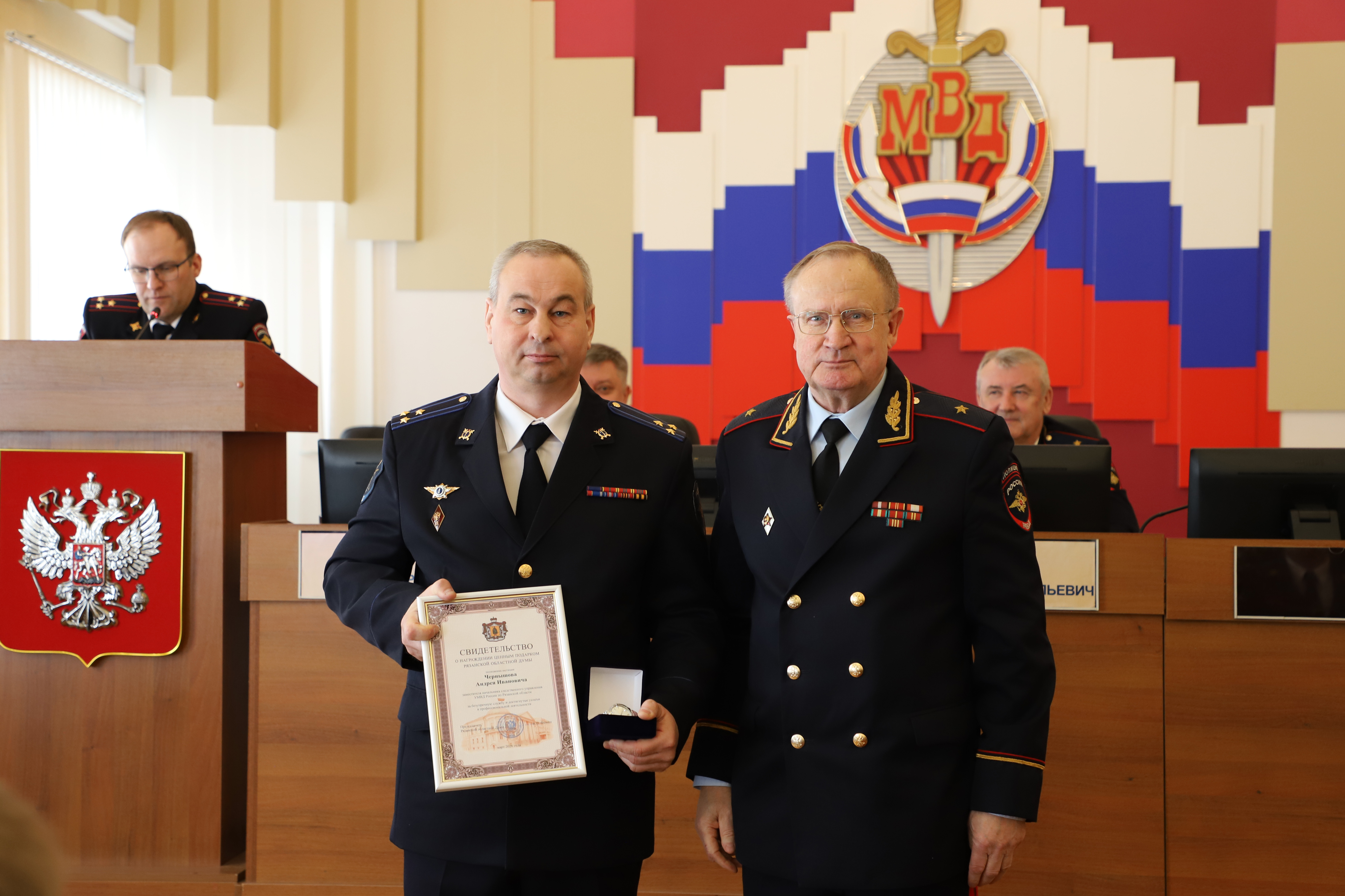 Николай Макариков поблагодарил следователей полиции за профессиональный подход к делу, отметив, что их работа является нелегким и ответственным трудом. За достигнутые высокие показатели в служебной деятельности и вклад в развитие органов предварительного следствия отличившимся сотрудникам парламентарий вручил награды Рязанской областной Думы.