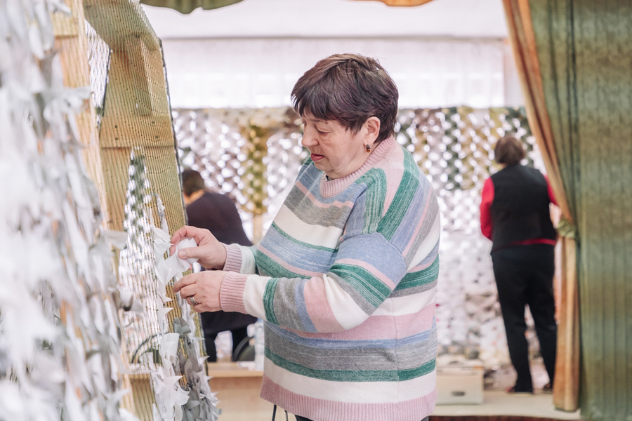 Также Аркадий Фомин ознакомился с работой группы «Сеточка», специализирующейся на плетении маскировочных сетей для участников специальной военной операции.